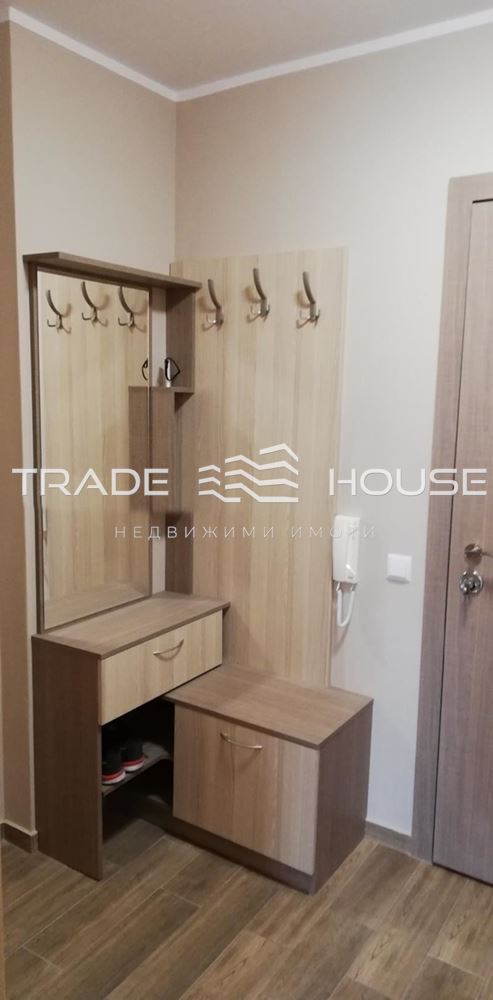 Състои се от просторен хол с кухненски бокс, спалня, баня с тоалетна, коридор и тераса. Апартаментът е стилно обзаведен с всичко необходимо. Всички мебели и ел.уреди са нови и и в гаранционен срок. Ел.уредите са на реномирани марки и включват климатици Дайкин, вградена фурна и керамични котлони Горенье, абсорбатор Тека, автоматична пералня, хладилник, ел. бойлер. Сградата е с асансьор и луксозни общи части. В близост има училища, детски градини и хипермаркети.