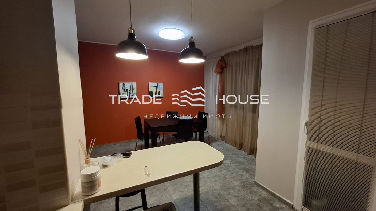 № 19191 Трейд Хаус недвижими имоти предлага под наем апартамент в центъра на Пловдив 100 кв.м, разположен на 7-ия етаж от 8-етажна сграда с асансьор. Жилището разполага с две широки спални, просторен хол и кухня с трапезария. Като допълнително удобство има втора тоалетна с душ. Апартаментът се намира на изключително удобно място в близост до магазини, училища и детска градина.