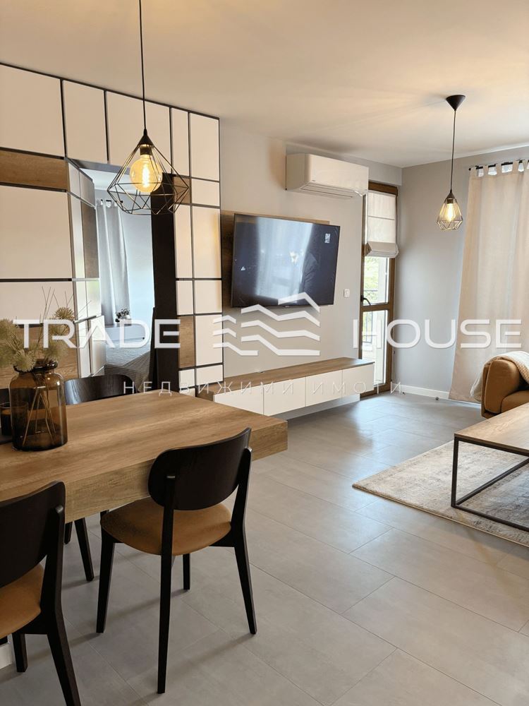 - Уникални дизайнерски решения – секция със скрита врата към спалнята, съчетаваща практичност и стил
