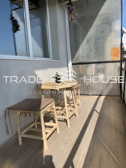 Трейд Хаус предлага Напълно обзаведен апартамент с нови вградени ел.уреди и нови мебели,след основен ремонт.Намира се до ВМИ, между двете тепета с панорамна гледка.Имота е просторен слънчев с големи спални ,вградени гардероби ,две големи тераси ,нова модерна кухня и със заден двор с места за паркиране.